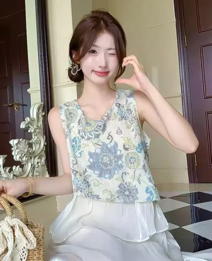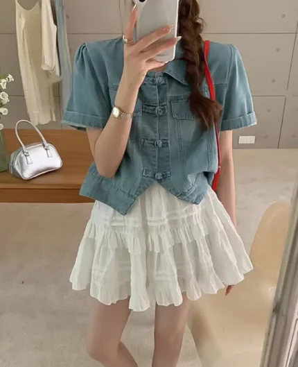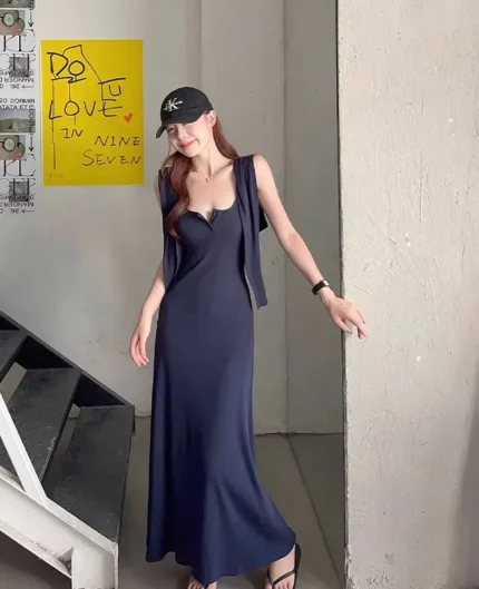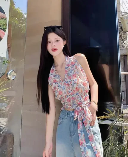 美式吊帶+高腰闊腿長褲兩件式牛仔套裝