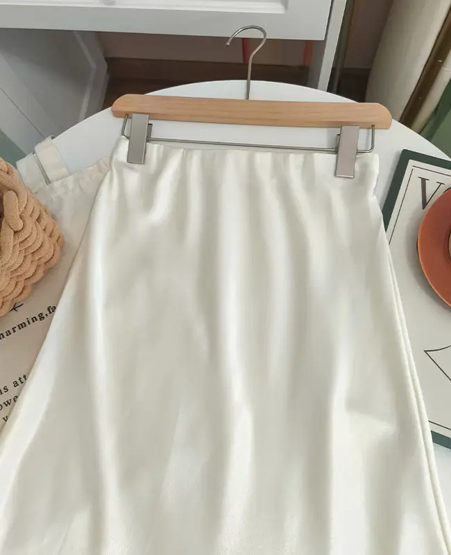光澤質感緞面魚尾半長裙**
