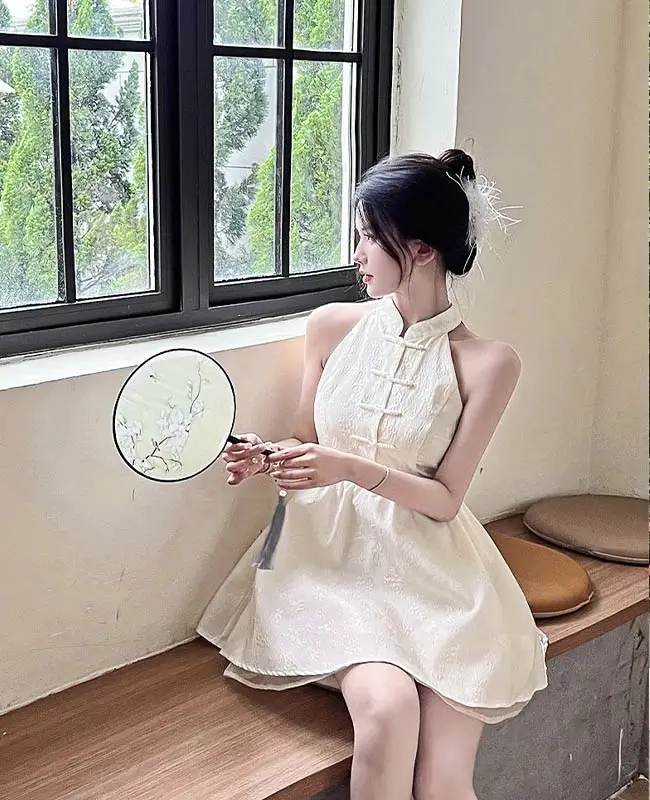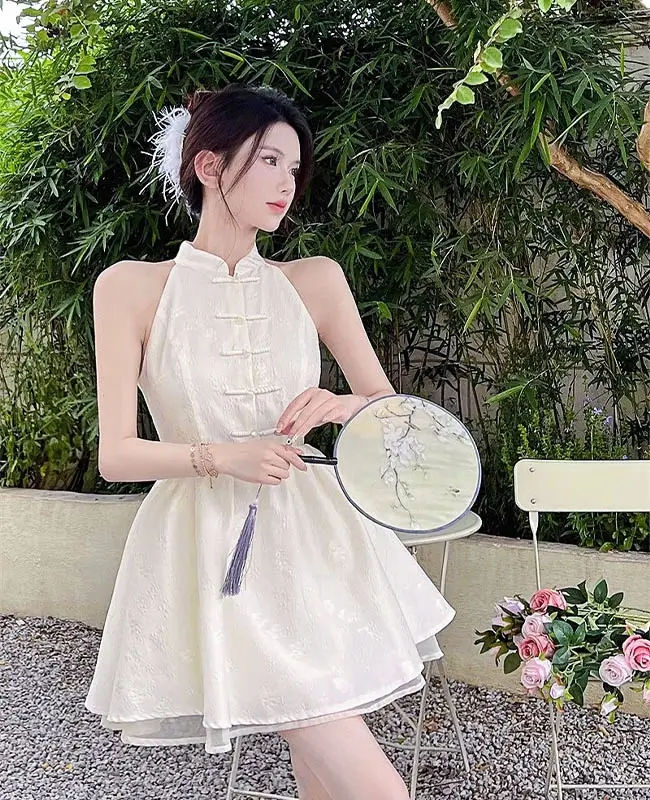 (Defect) 古典美新式旗袍上衣+後鬆緊A半長裙兩件套