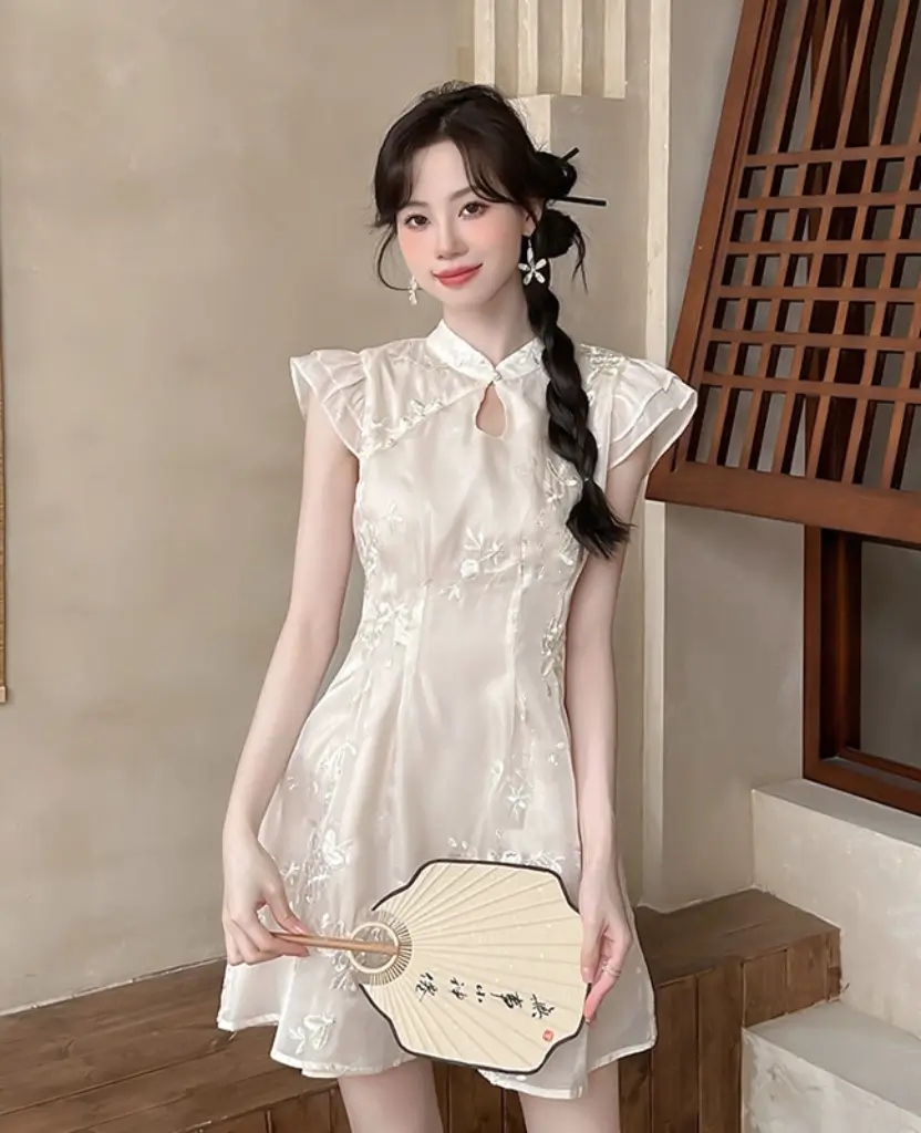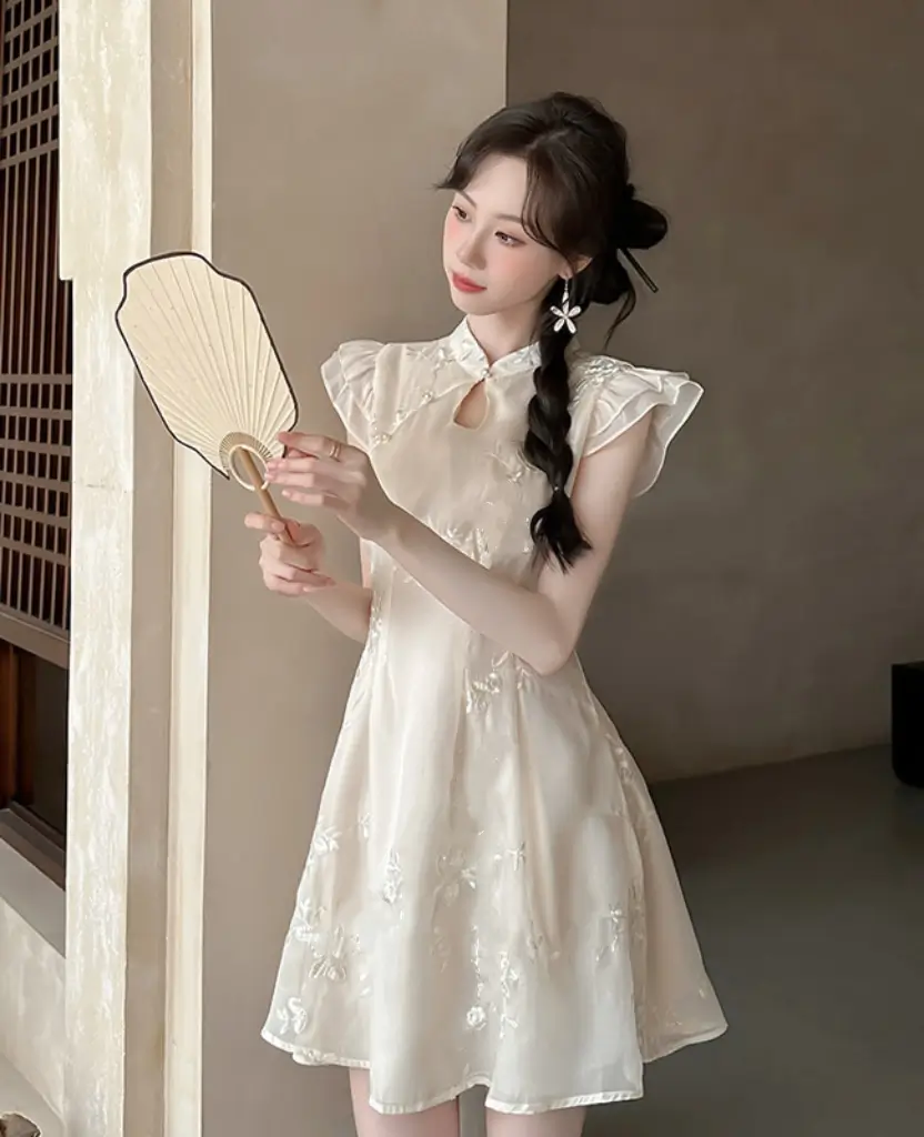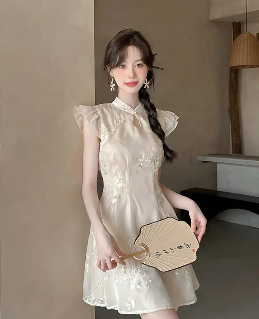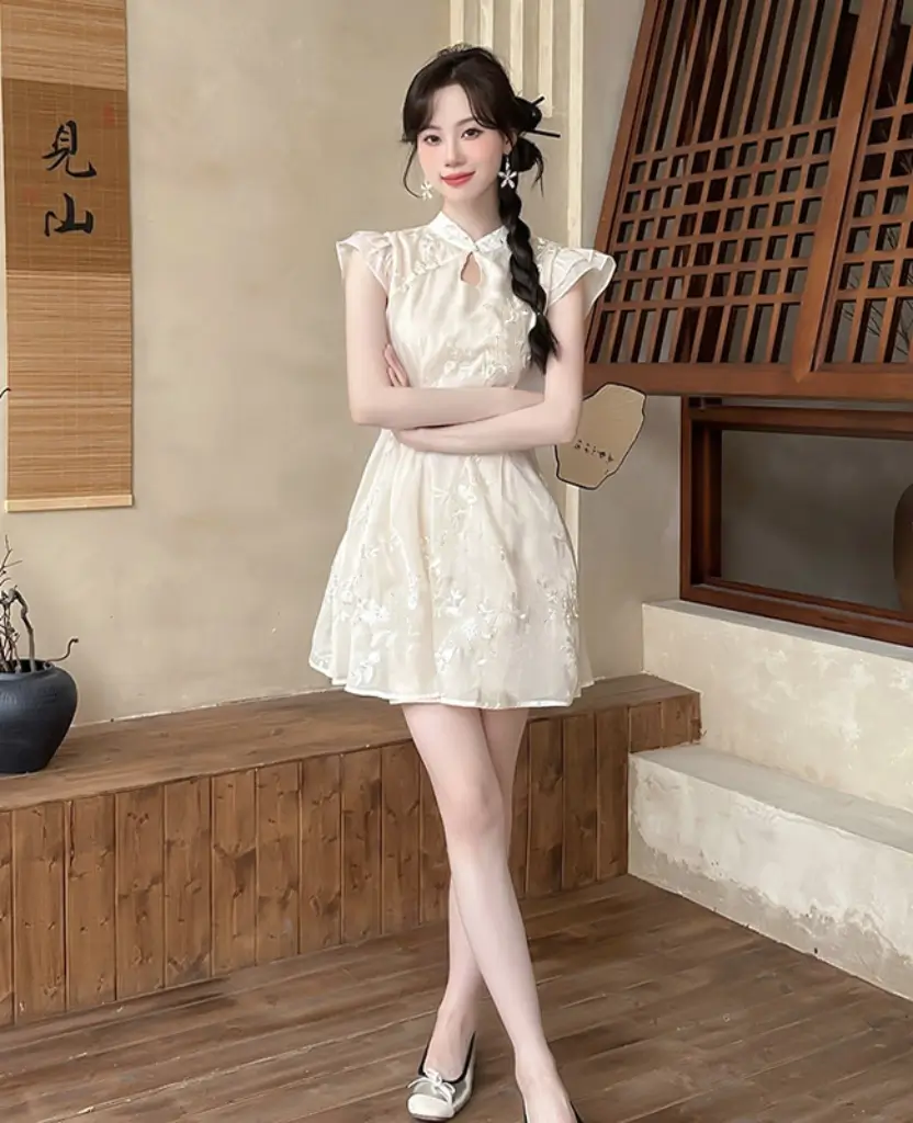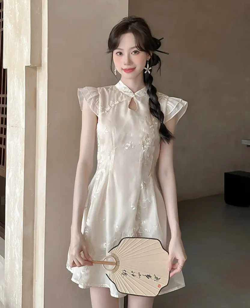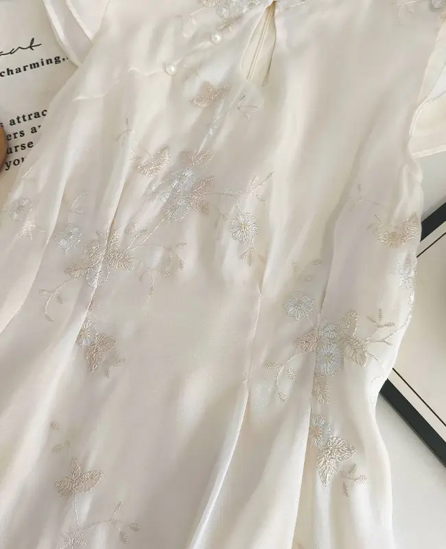中式古典精緻刺繡連身裙