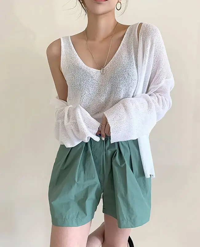 斜肩上衣+鬆緊腰長裙兩件式套裝Set