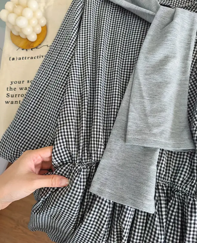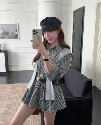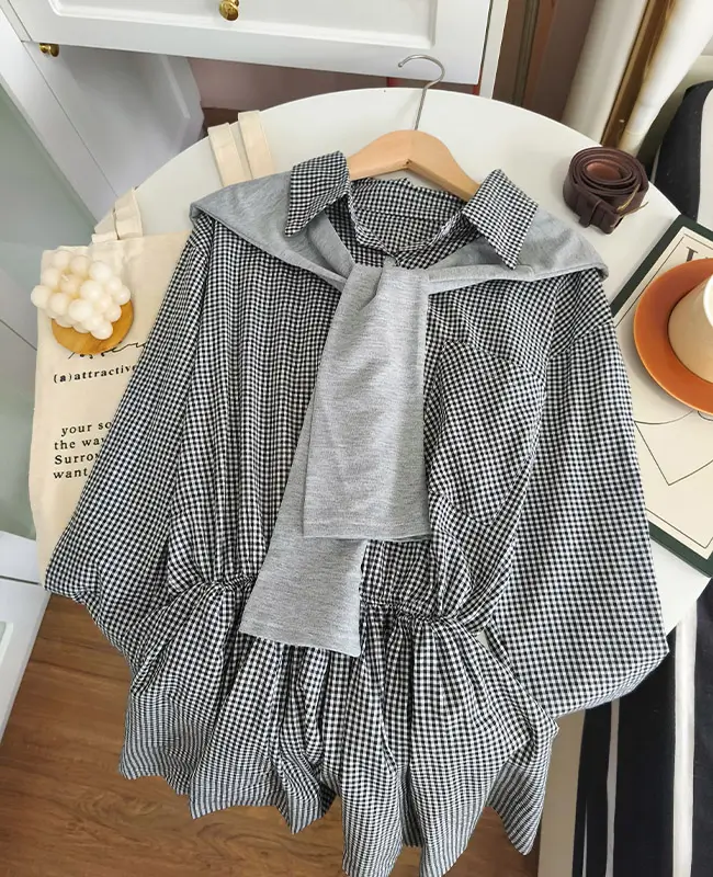 收腰設計感格紋襯衫