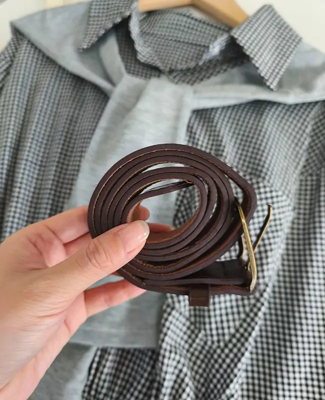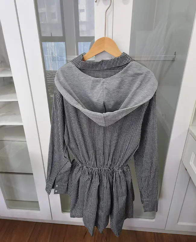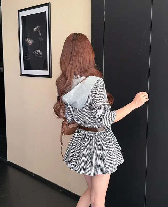 披肩連帽+格紋連身裙+附送腰帶 三件套Set