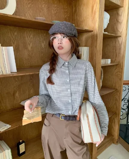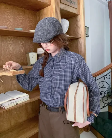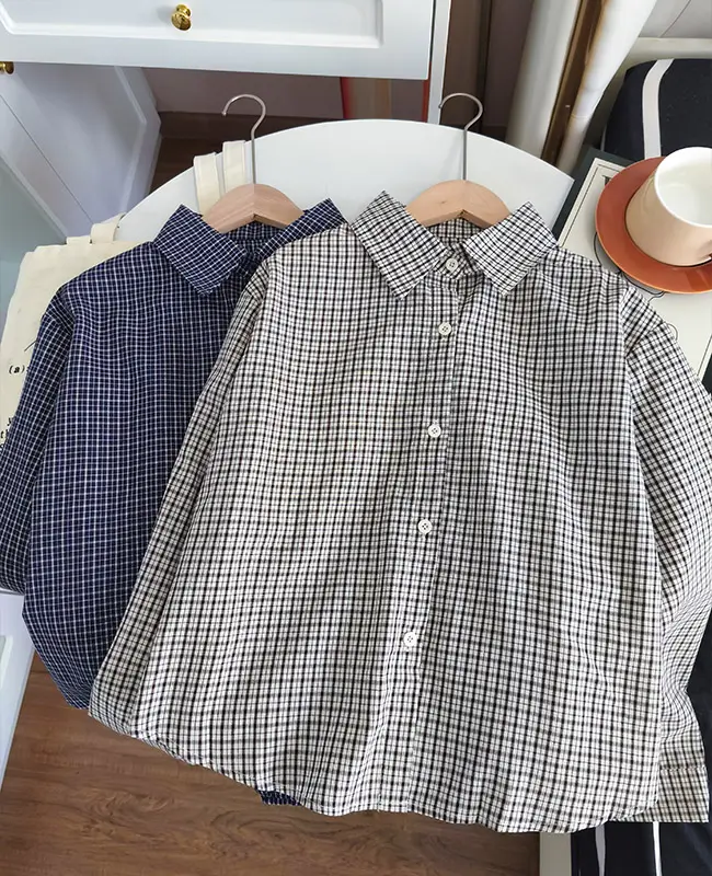 復古格紋調襯衫