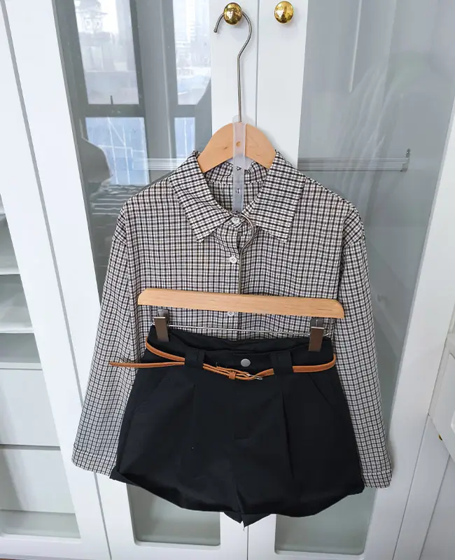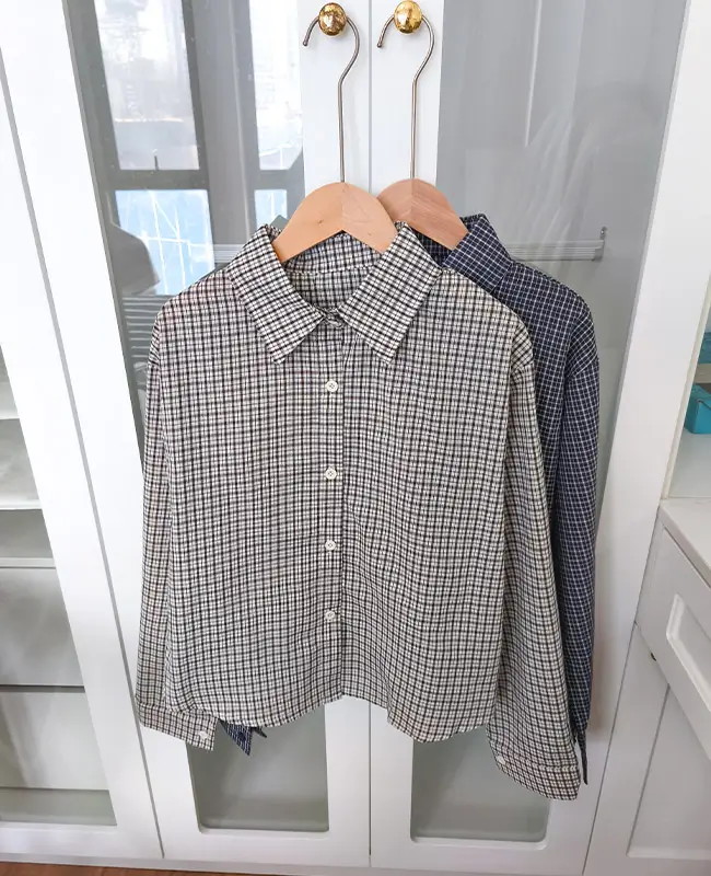 收腰設計感格紋襯衫