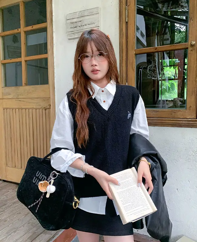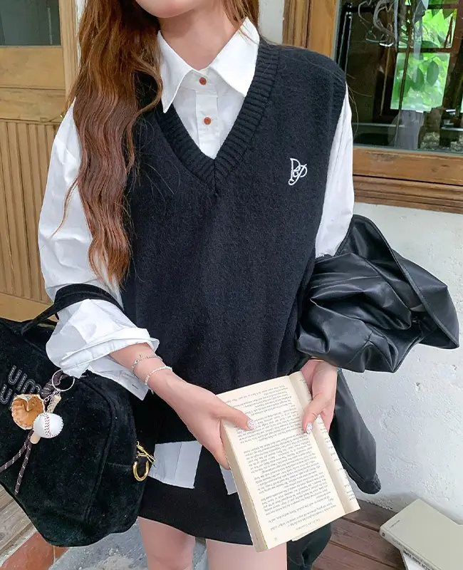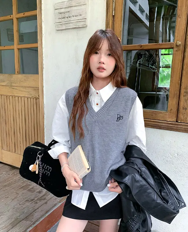 披肩沒有賣 ~~ 🫶🏻 馬甲背心這裡購入 >> 校園風刺繡馬甲背心