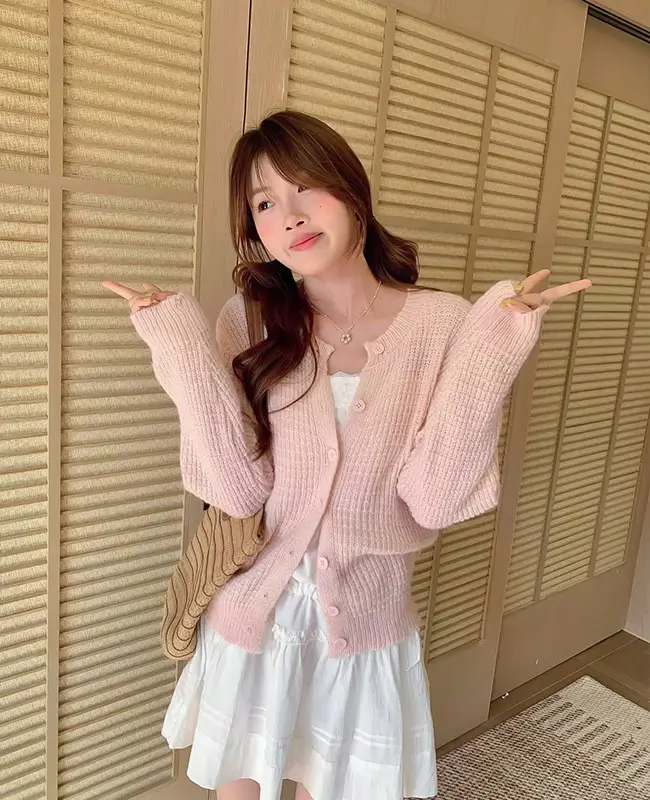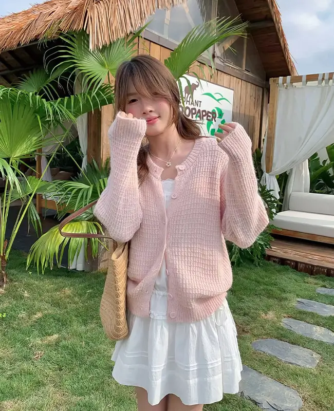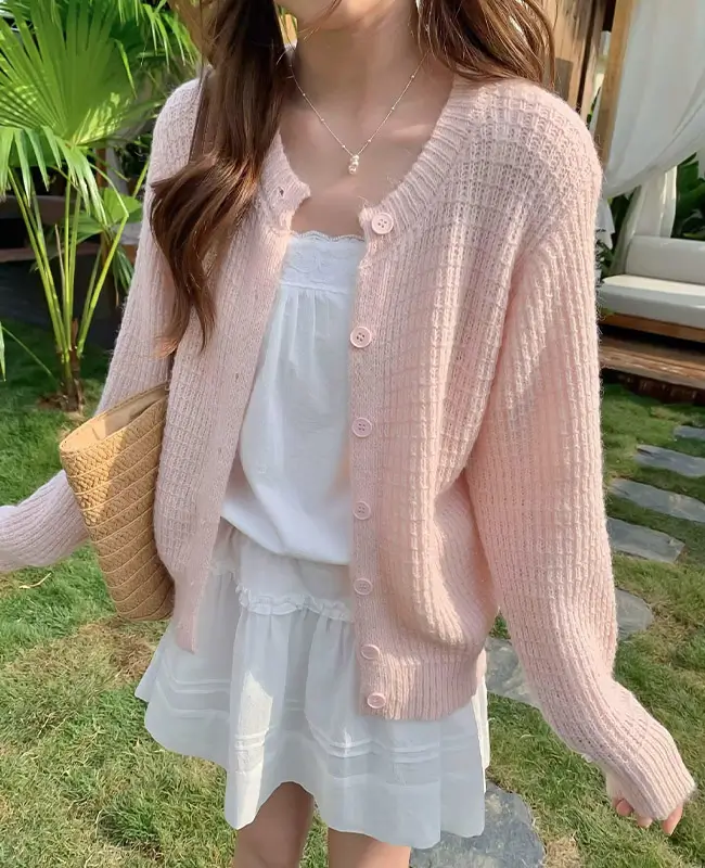 鏤空感透膚毛衣外套