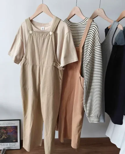 工裝背帶褲+休閒Tee