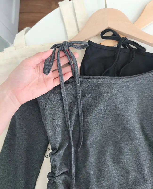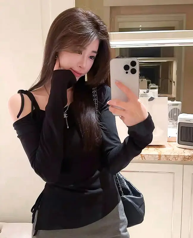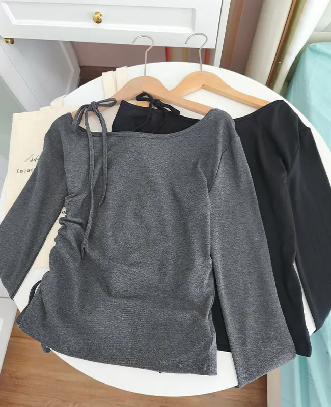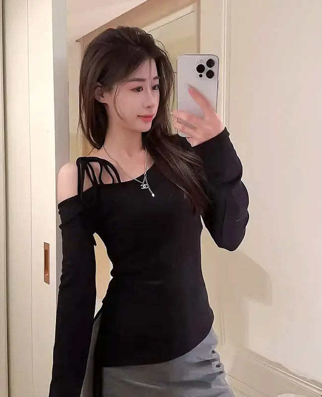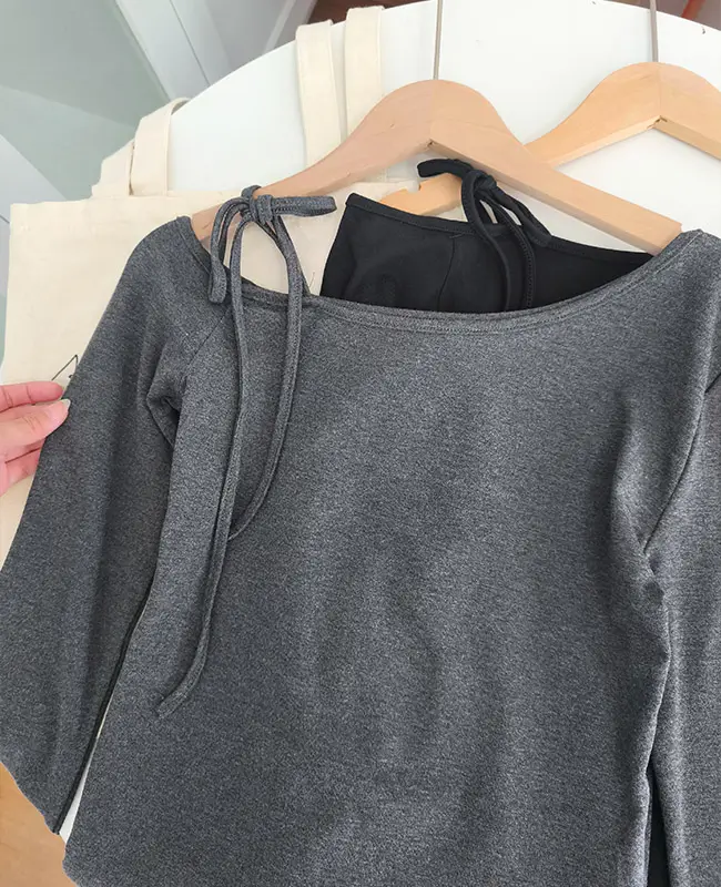 純欲繫帶斜露肩上衣