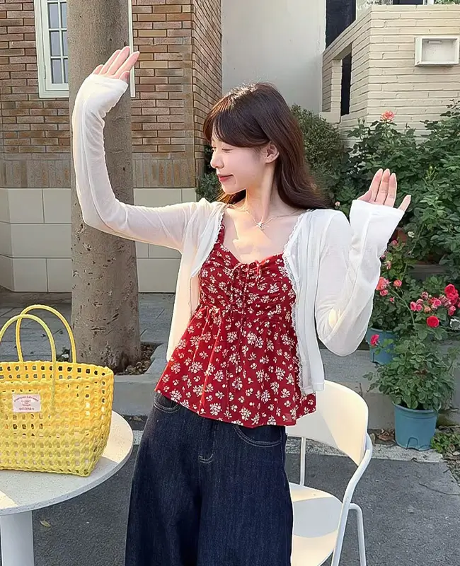小碎花細肩娃娃上衣 – 吊帶碎花, Free Size
