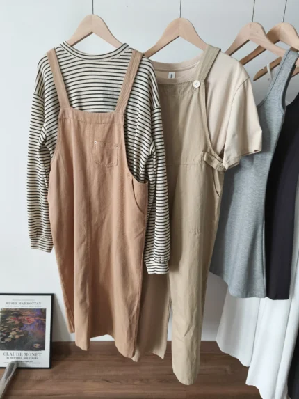 日系工裝背帶裙+條紋長袖Tee