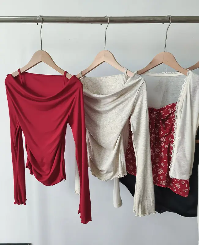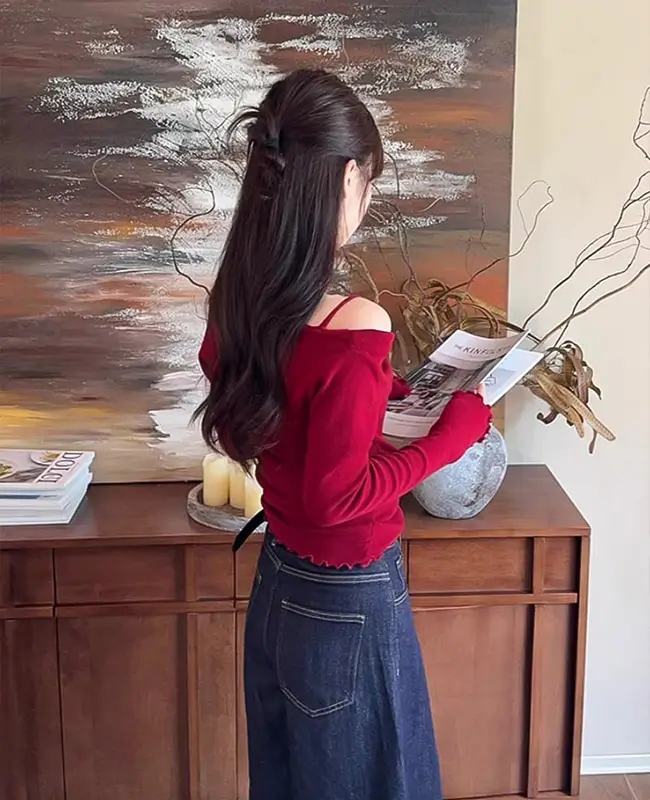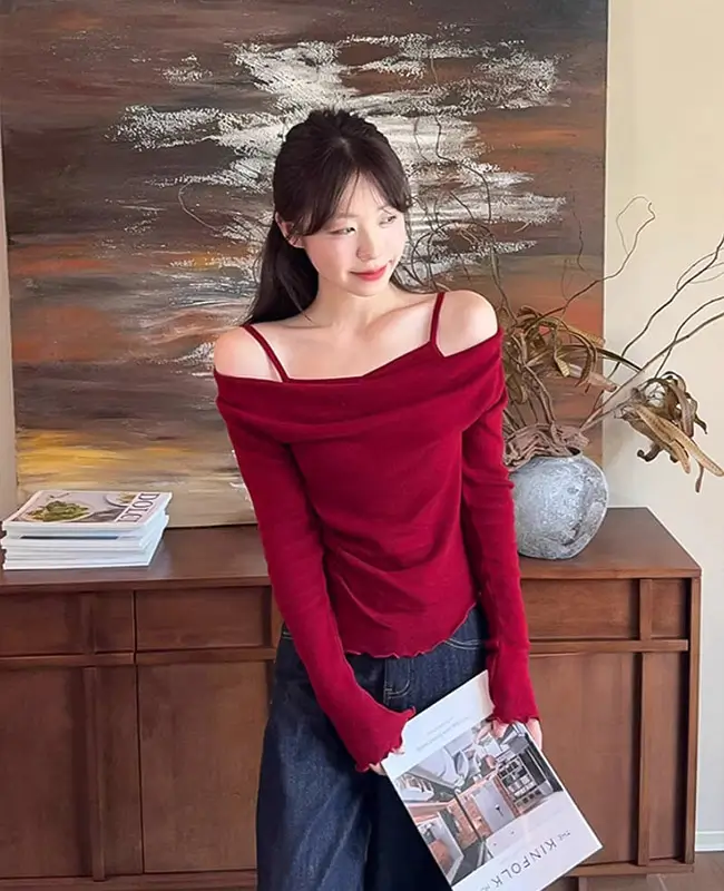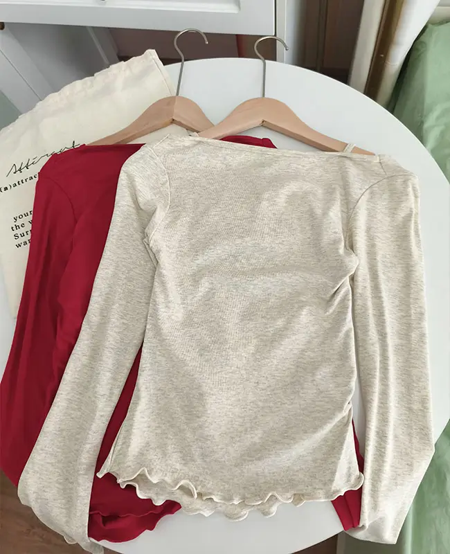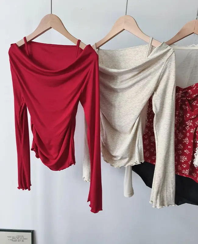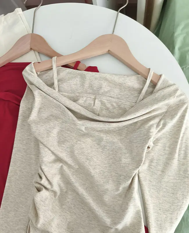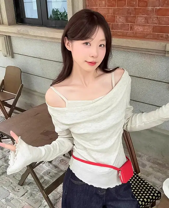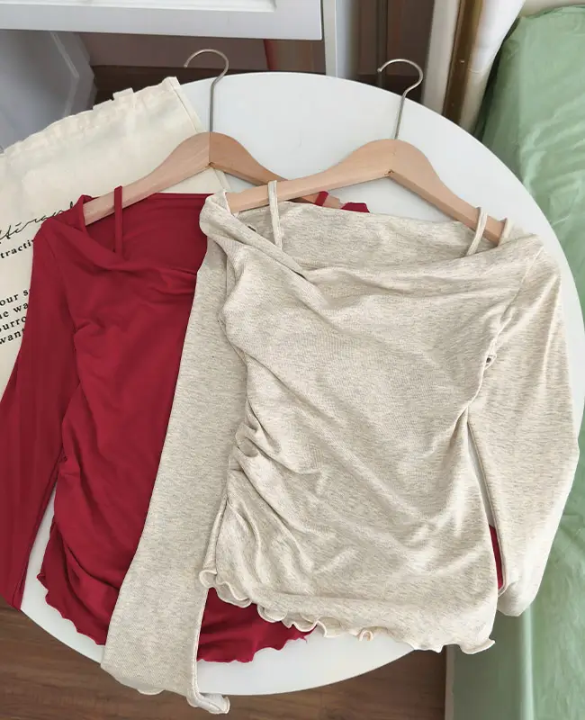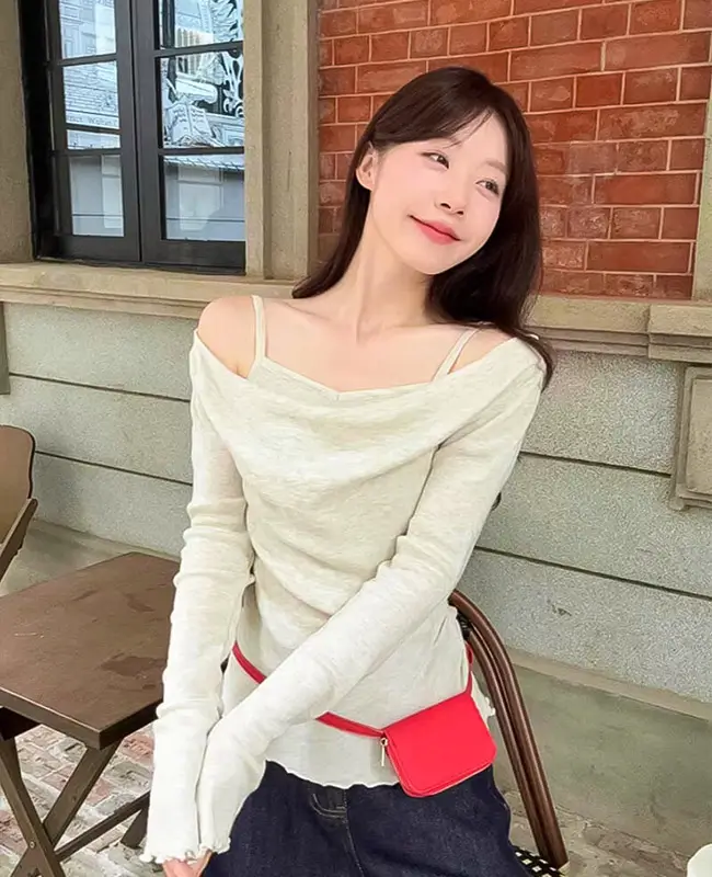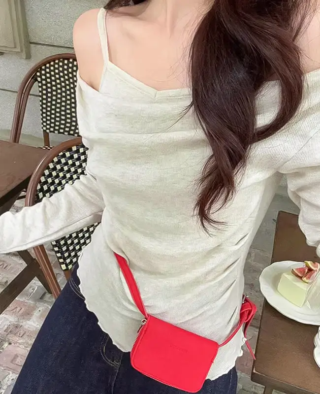 微心機露肩假兩件上衣