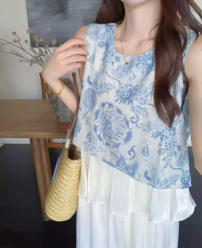 法式復古圖騰印花上衣
