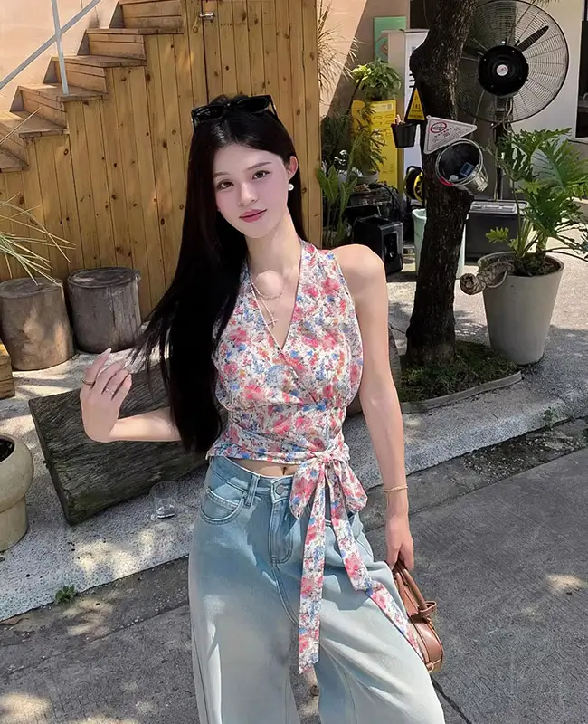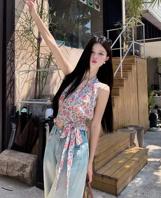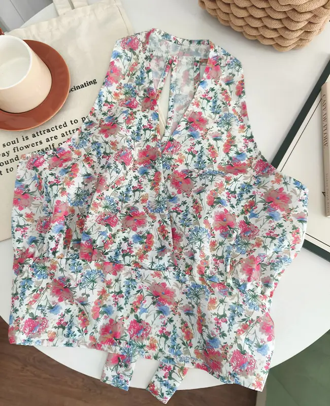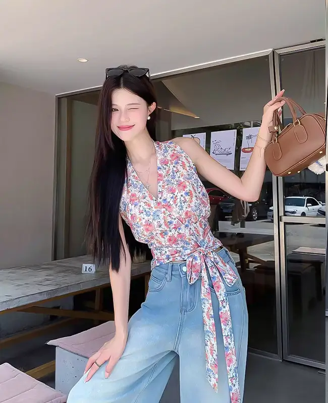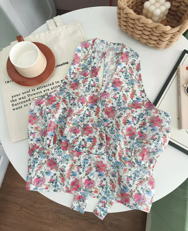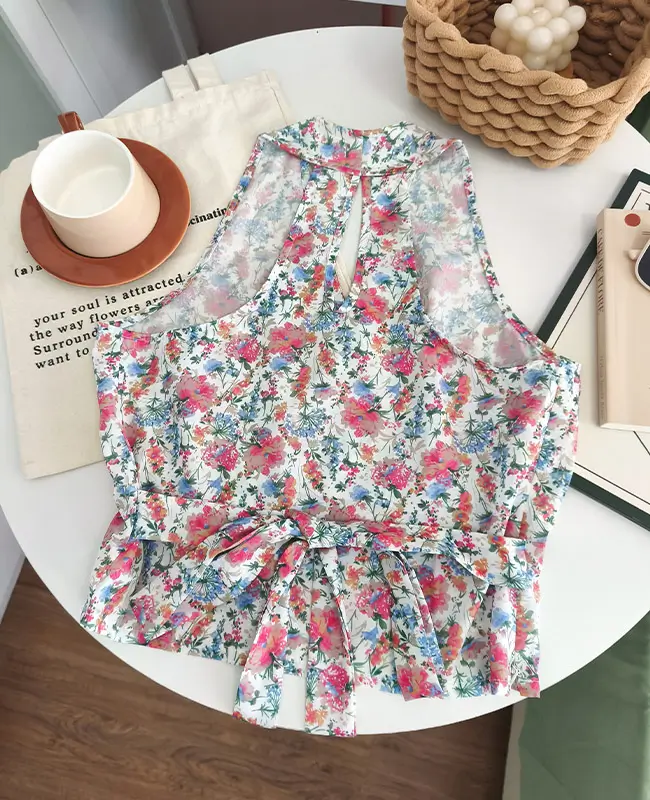 甜辣風碎花繫腰上衣