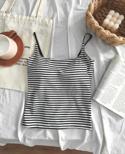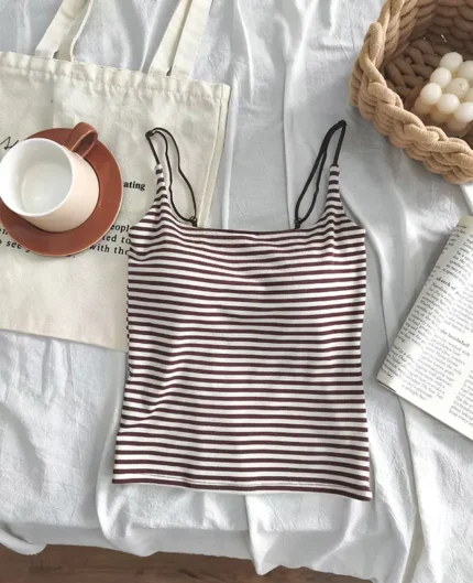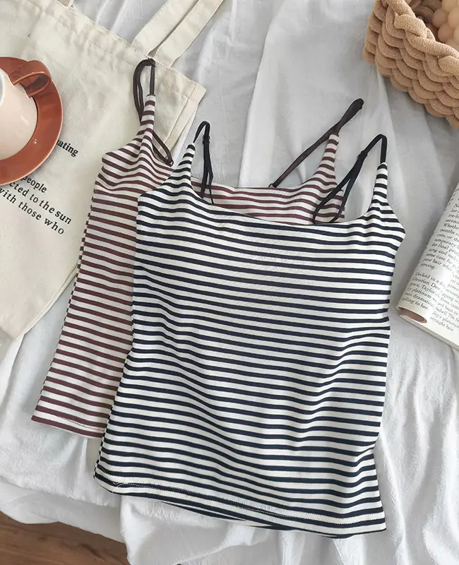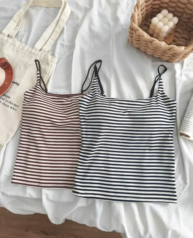 夏日清爽細肩帶條紋拼色背心