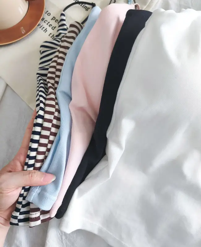 素色直條紋圓弧上衣